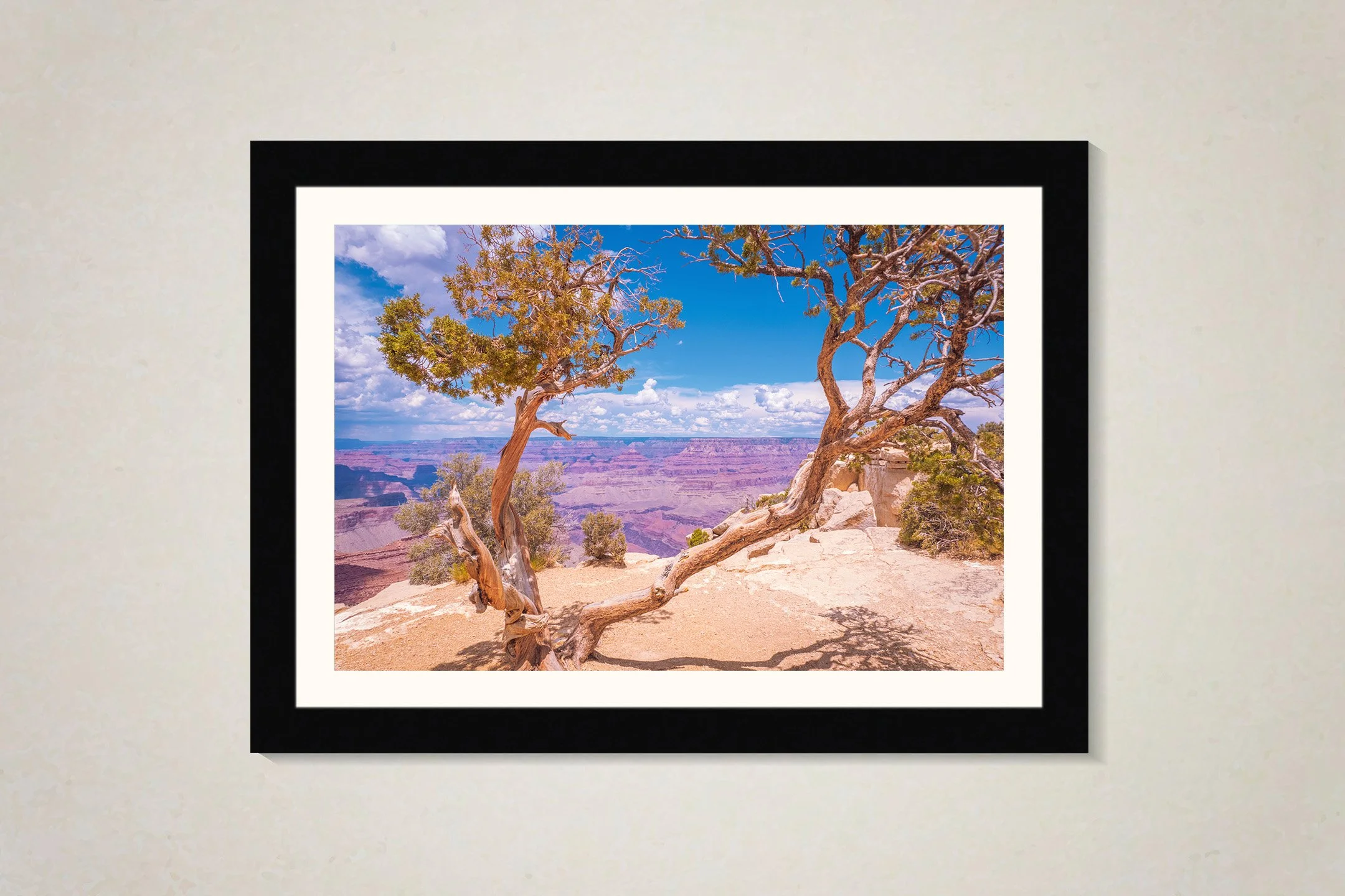 • Framed Prints — Satin paper, smooth black non-glare plexiglass frame with single white mat.
